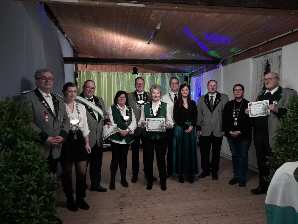 Die Schützengesellschaft gratulierte und freut sich nun auf eine bevorstehende ereignisreiche Zeit gemeinsam mit: dem neuen König Johannes Schmidt, Prinzessin Doris Hartmann, Jugendprinzessin Sarah Doetsch, Bürgerkönigin Andrea Mülhöfer, dem Scheibenkönig Horst Werner Sackenheim, dem Montagskönig Thomas Neuser, sowie den neuen Ehrenmitgliedern: Irene Gdanietz-Müller, Klemens Welling und Peter Naunheim.