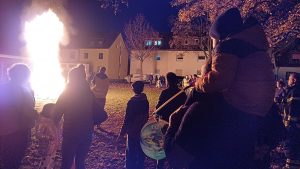 Am Martinsfeuer angekommen erhielten die Kinder die heißbegehrten Zuckerwecken und warmen Kindertee. Bei Glühwein und heißen Würstchen standen die Zugteilnehmer*innen noch lange am Feuer zusammen und die Kinder konnten St. Martin auf seinem Pferd aus der Nähe bestaunen. Einen herzlichen Dank an die Ordner für die Zugbegleitung sowie die freiwillige Feuerwehr für ihren Einsatz.